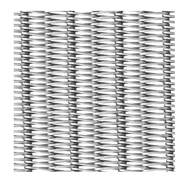 左右交替的網條通過直串條聯結而成,該系列網帶網孔較密,網孔間距均勻,能使網帶行走平穩(wěn)。該系列網帶適合于承載體積較小而質地相對較重的輸送線(粉末冶金)。