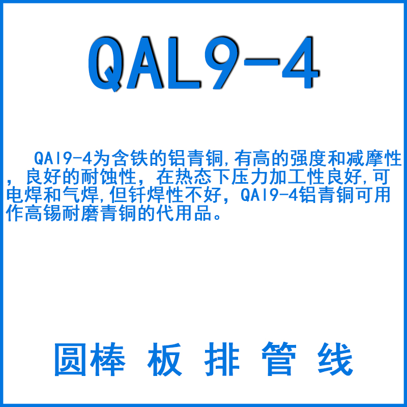 QAl9-4為含鐵的鋁青銅,有高的強(qiáng)度和減摩性,良好的耐蝕性,在熱態(tài)下壓力加工性良好,可電焊和氣焊,但釬焊性不好,QAl9-4鋁青銅可用作高錫耐磨青銅的代用品。