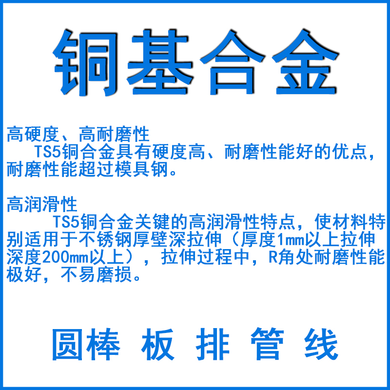 TS5銅合金具有硬度高、耐磨性能好的優(yōu)點,耐磨性能超過模具鋼。